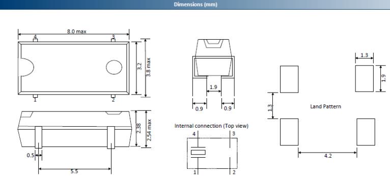 | Shunt capacitance | C0 | 0.9pF typical | |