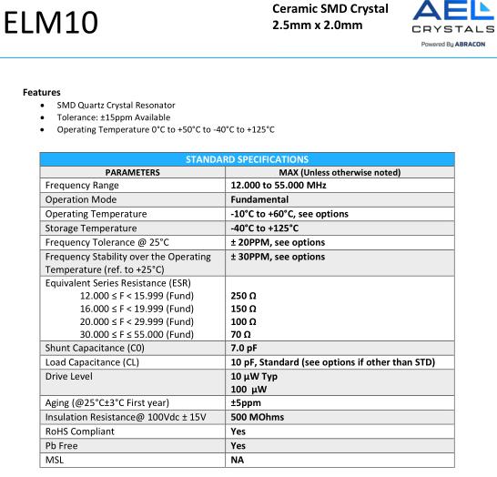 AEL晶振,ELM10晶振,ELM10-12.000MHz-9-7-T晶振