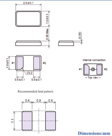 | 頻率溫度特征 | f_tem | ±20 × 10-6/-20°C ~ +70°C | 超出標準的規格請聯系我們. |