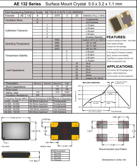 Anderson晶振,AE132晶振,AE-132-A-2-2070-3-20-20M0000晶振