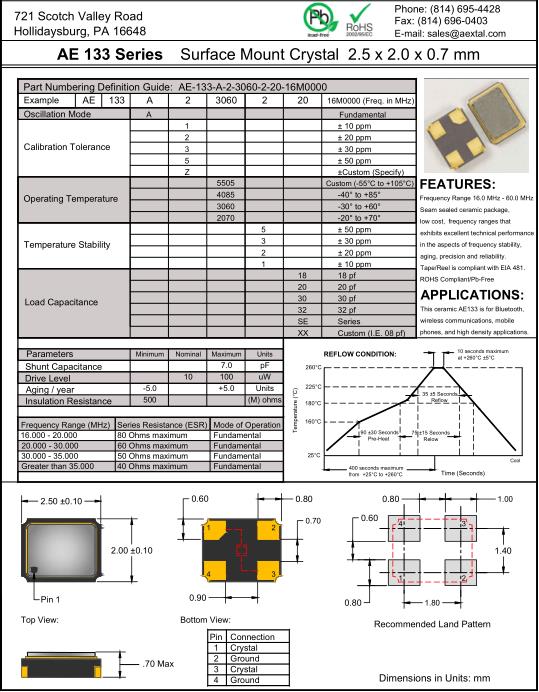 | Example | AE | 133 | A | 2 | 3060 | 2 | 20 | 16M0000 (Freq. in MHz) |