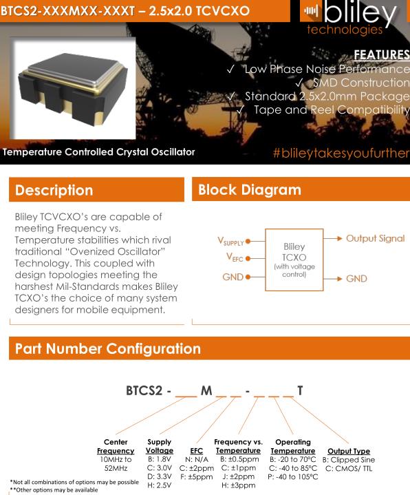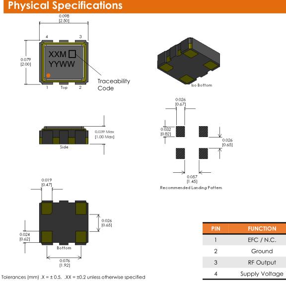 | Frequency Range | See options (min) | ±2, ±5 | ppm | ||