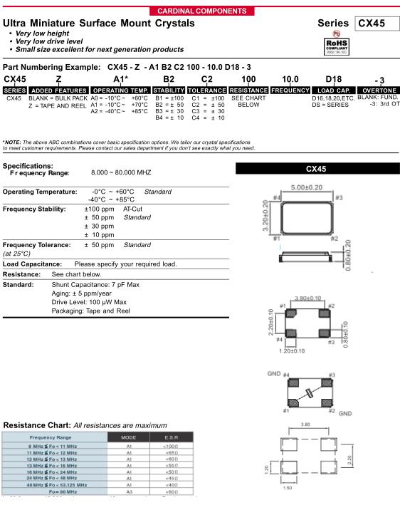 Cardinal晶振,CX45晶振,CX45-Z-A1B2C2100-10.0D18-3晶振