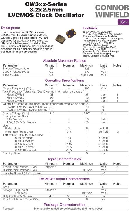 ConnorWinfield晶振,CW37晶振,CW333-020.0M晶振