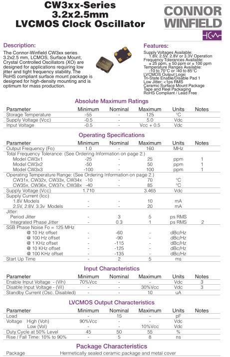 用于JEDEC J-STD-020D.01回流條件的耐熱可用性需個別判斷。請聯(lián)系我們以便獲取相關(guān)信息。ConnorWinfield晶振,CW38晶振,CW333-016.000M晶振.