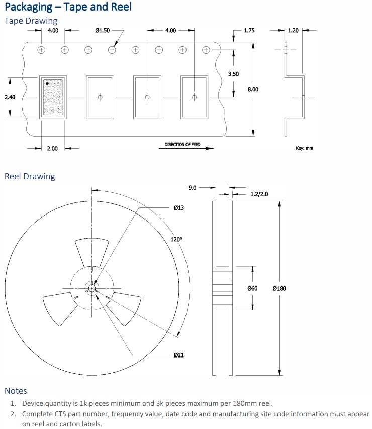 | 402F200XXCKR | CTS晶振 | 402 | MHz Crystal | 20MHz | 4-SMD, No Lead |