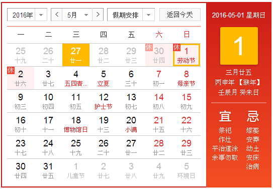 1、放假時間4月30日至5月2日(星期六至星期一)放假,共計3天,5月3日(星期二)正常上班.