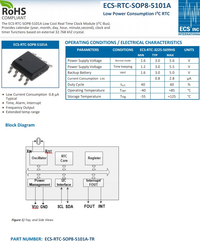 ECS-RTC-SOP8-5101A非常適合電池供電的便攜式遠程電子設備