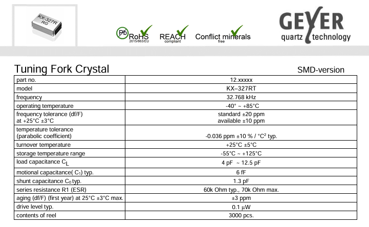 KX-327RT的價值,首先體現在其精準可控的技術參數中.它采用2.0×1.2×0.6毫米的微型封裝,搭配2焊盤引腳布局,在節省電路板空間的同時,確保了安裝的穩定性,完美適配小型化工業設備的需求;32.768KHz的固定頻率與7PF的電容值、20PP的頻率偏差,賦予了設備毫秒級的時間精度,這對于需要持續采集數據的測試儀器而言,是保障測量結果準確的核心前提;而-40℃至85℃的寬溫工作范圍與MSL等級2的濕度敏感性能,則讓它在高溫高濕的工業車間或嚴寒的戶外環境中依然穩定運行,打破了環境對電子設備的限制.