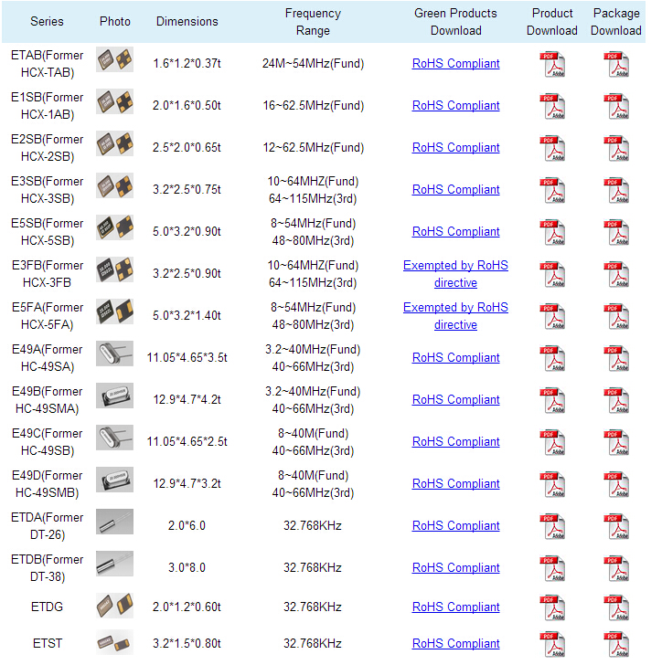 臺灣鴻星晶振中之前的HCX開頭的料號都是石英晶體諧振器,而以HXO開頭的料號則是石英振蕩器,以下是帝國科技整理的一份詳細鴻星新老型號參數資料,供大家采購選型時參考.