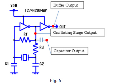 探頭不影響圖2,因為從緩沖區的輸出是通過在下一階段的振蕩電路的輸出輸入到逆變器.