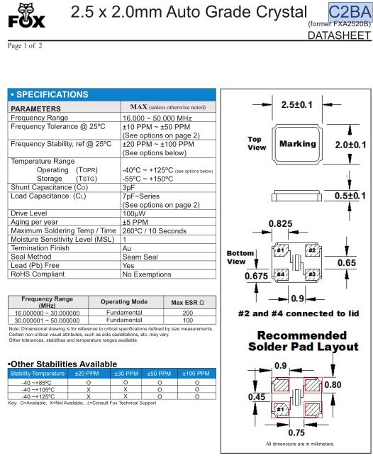FOX晶振,C2BA晶振,FC2BACBEI16.0晶振