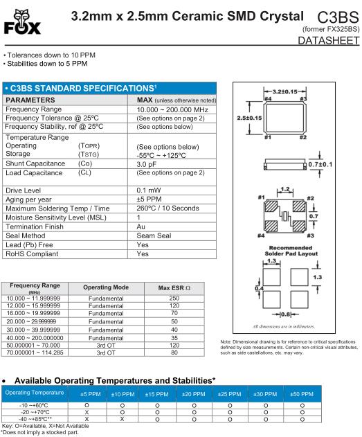 | FOX晶振規格 | 單位 | C3BS晶振頻率范圍 | 石英晶振基本條件 |