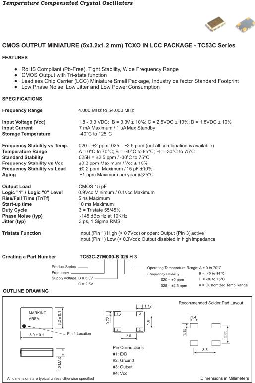 Fortiming晶振,TC53C晶振,TC53C-27M000-B020H3晶振