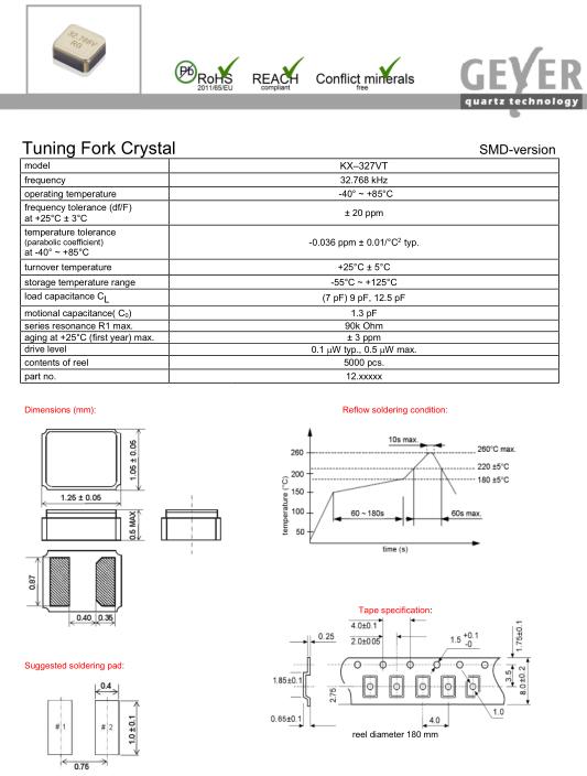 | GEYER晶振規(guī)格 | 單位 | KX–327VT晶振頻率范圍 | 石英晶振基本條件 |