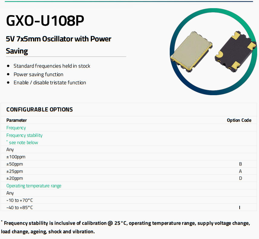 GXO-U108P/I-100MHz晶振,英國(guó)高利奇有源晶振,汽車(chē)定速巡航模塊晶振