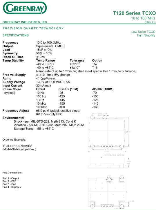 Greenray晶振,T120晶振,T120-T57-3.3-20.0MHz晶振