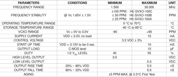HEC晶振,HE-SVXO-100晶振,VCXO壓控晶振