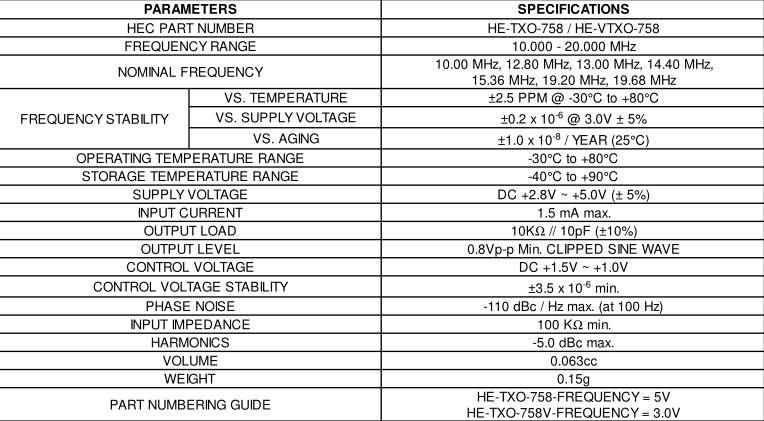 HEC晶振,HE-TXO-758晶振,HE-TXO-758-20.00M晶振