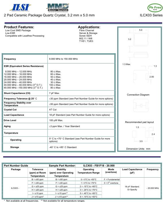 艾爾西晶振,ILCX03晶振,ILCX03-FB1F18-20.000晶振