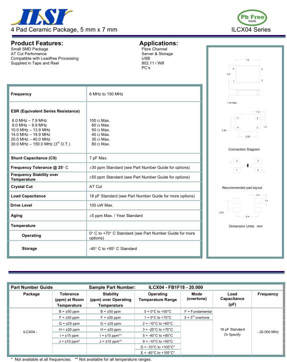 ILSI晶振,ILCX04晶振,ILCX04-FB1F18-20.000晶振