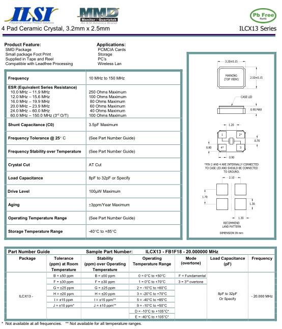 ILSI晶振,ILCX13晶振,ILCX13-FB1F18-20.000000MHZ晶振