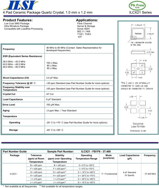ILSI晶振,ILCX21晶振,ILCX21-FB1F6-37.400晶振