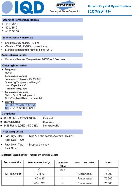 IQD晶振,CX16VTF晶振,32.768kHz-CX16TF-C-SM1-100晶振