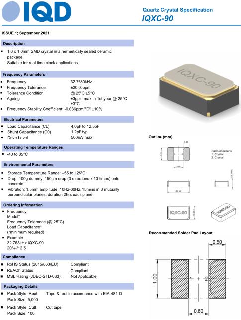 IQD晶振,IQXC-90晶振,32.768kHz-IQXC-90-20-12.5晶振