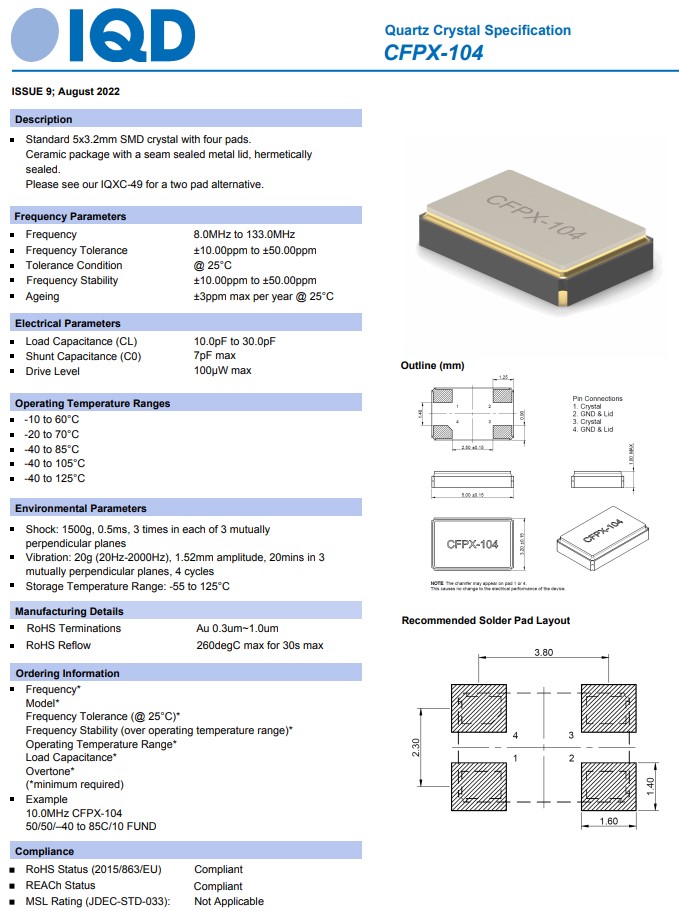 LFXTAL061633REEL,CFPX-104,5032mm,英國IQD進(jìn)口晶振