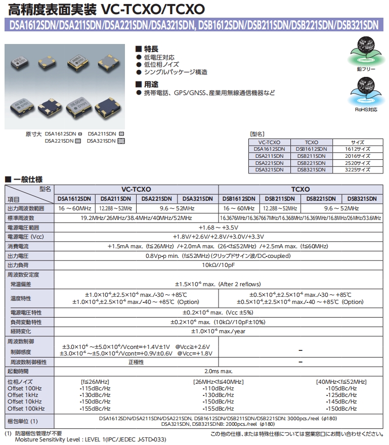 | 標準周波數 | 19.2MHz/26MHz/38.4MHz/40MHz/52MHz | ||||||