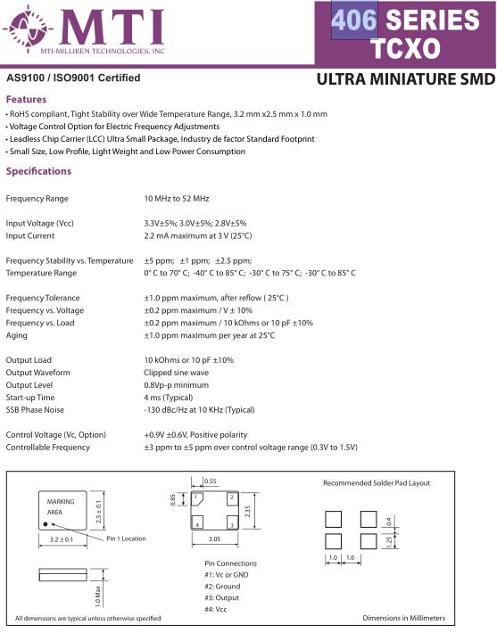 MTI晶振,406晶振,溫補晶振