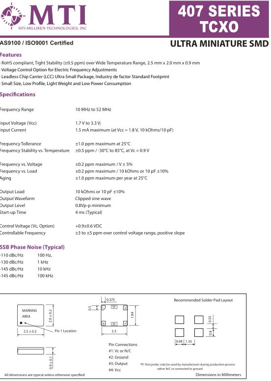MTI晶振,407晶振,TCXO溫補(bǔ)晶振