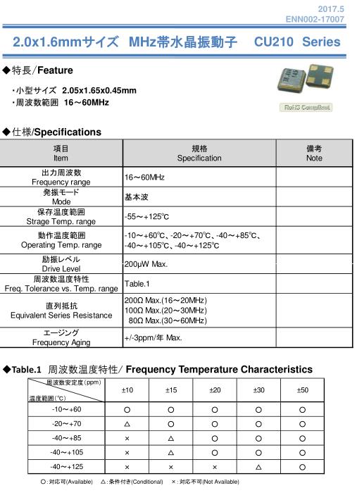 納卡晶振,CU210晶振,2016mm無源晶振,貼片晶振本身體積小,超薄型石英晶體振蕩器,特別適用于有目前高速發展的高端電子數碼產品,因為晶振本身小型化需求的市場領域,小型,薄型是對應陶瓷振蕩器(偏差大)和普通的石英晶體振蕩器(偏差小)的中間領域的一種性價比較出色的產品.產品廣泛用于筆記本電腦,無線電話,衛星導航SSD,USB,Blu-ray等用途,符合無鉛焊接的高溫回流焊曲線特性.
