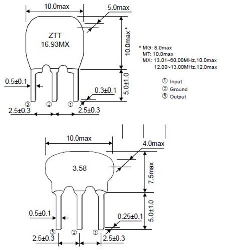 【ZTT陶瓷濾波器尺寸圖】