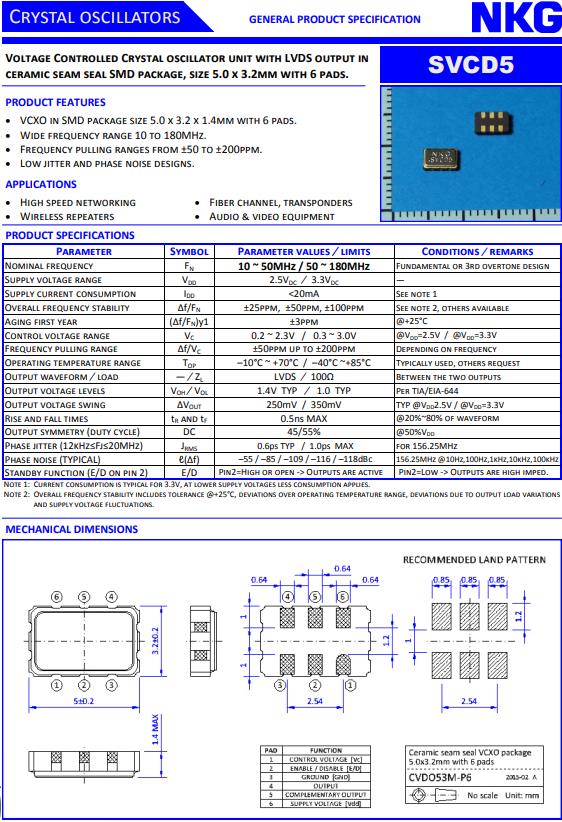 NJR晶振,SVCD5晶振,SVCD533B-26.000MT50A-EXT晶振,5032mm體積的石英晶體振蕩器,有源晶振,該產品可驅動2.5V的溫補晶振,壓控晶振,VC-TCXO晶體振蕩器產品,電源電壓的低電耗型,編帶包裝方式,可對應自動高速貼片機自動焊接,及IR回流焊接(無鉛對應),為無鉛產品,超小型,質地輕.產品被廣泛應用到集成電路,程控交換系統,無線發射基站.