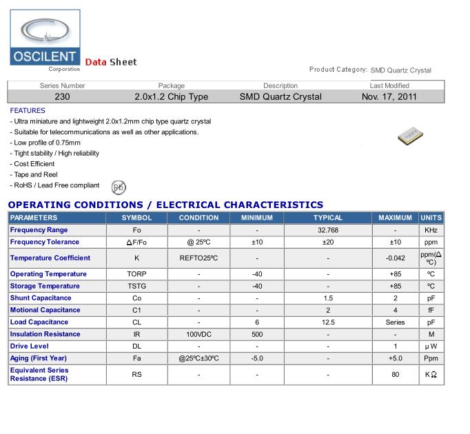 Oscilent晶振,230晶振,230-32.768K-SR-20-W-TR晶振