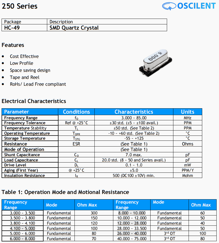 250-4.0M-18-S-TR晶振,進口奧斯康利49SMD晶振,6G室外基站晶振,美國Oscilent晶振公司,特點,成本效益,低配置,節省空間的設計,磁帶和卷軸,符合RoHs/無鉛標準。奧斯康利晶振,歐美晶振,高品質晶振,貼片晶振,49SMD晶振,石英晶振,無源晶振,高精度晶振,6G通訊設備晶振,無線傳輸晶振,局域網晶振,小體積晶振,低損耗晶振 ,北斗衛星定位模塊晶振,6G無線網晶振,高精度晶振。