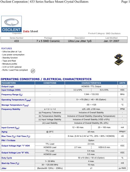Oscilent晶振,433晶振,433-24.0M-3EN-T-TS晶振
