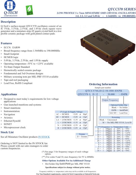 Q-Tech晶振,QTCC570HC晶振,QTCC570LD12-12.000-SNPB晶振