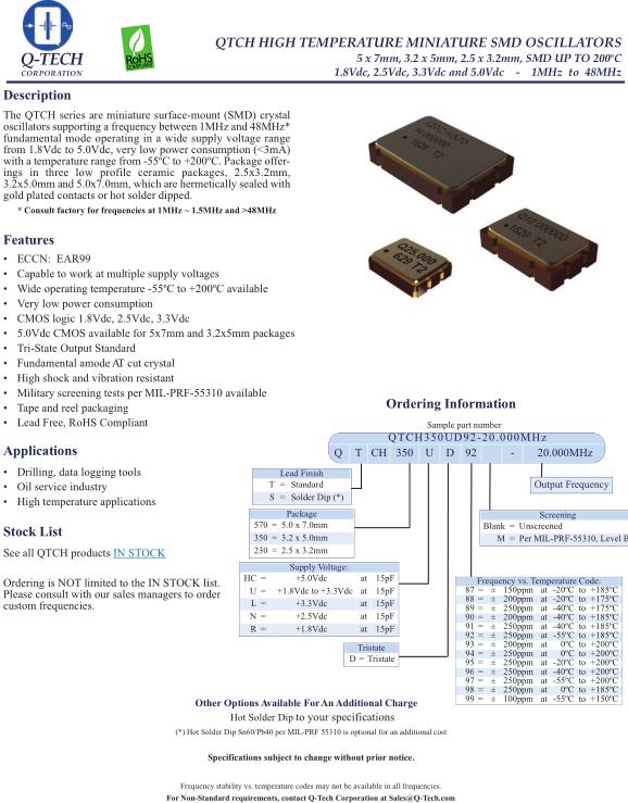 Q-Tech晶振,QTCH350晶振,QTCH230UD92-20.000MHz晶振