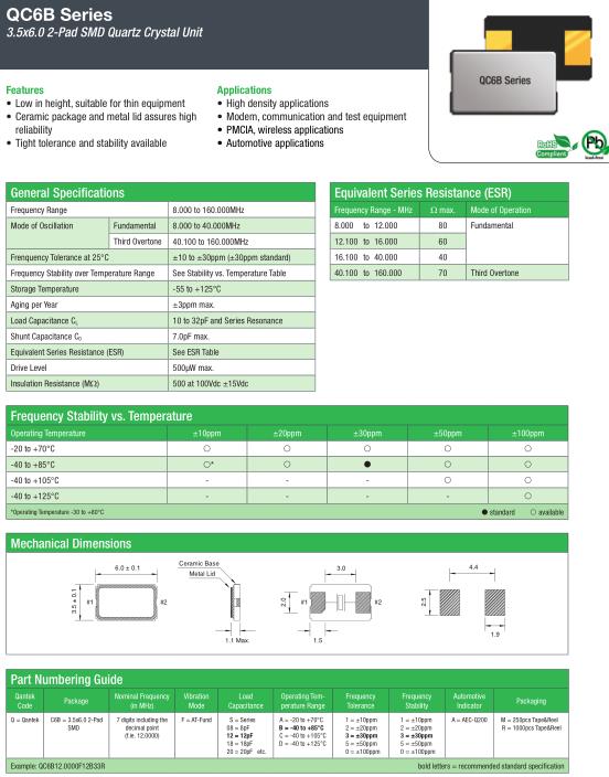 QANTEK晶振,QC6B晶振,QC6B12.0000F12B33R晶振