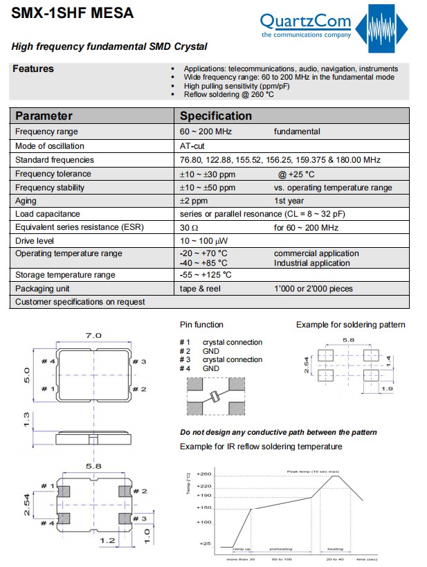 | QuartzCom晶振規格 | 單位 | SMX-1SHF晶振頻率范圍 | 石英晶振基本條件 |