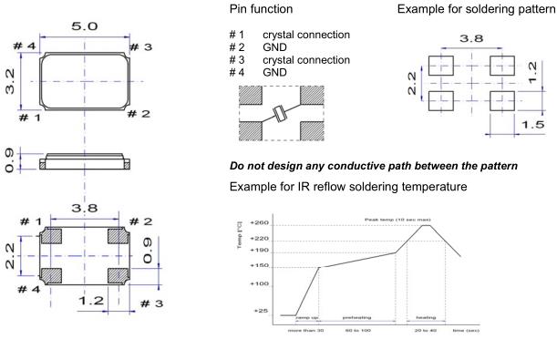 重復的溫度巨大變化可能會降低受損害的石英晶振產品特性,并導致塑料封裝里的線路擊穿.必須避免這種情況.