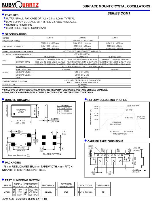 | COM118025 : ±25 ppm | COM125025 : ±25 ppm | COM13025 : ±25ppm | ||