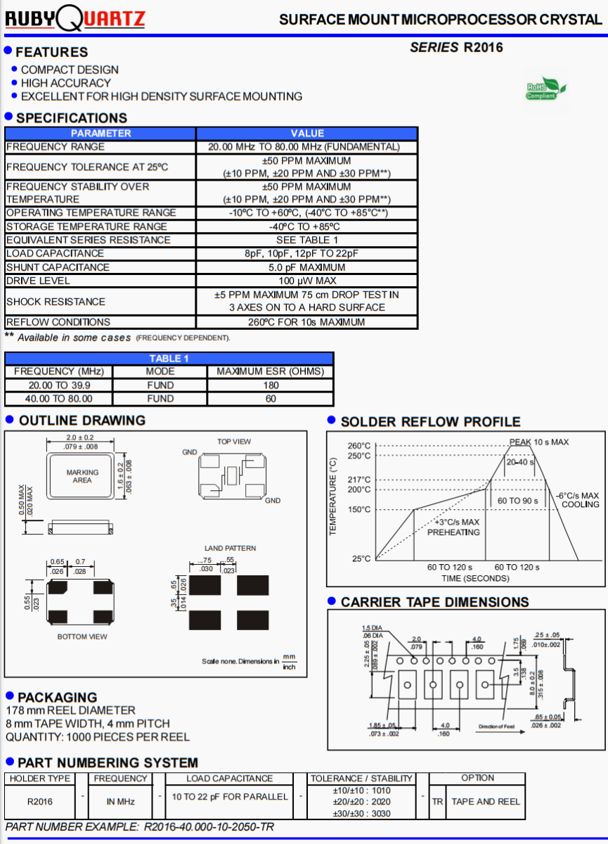 | 負載電容 | 8pF, 10pF, 12pF TO 22pF |