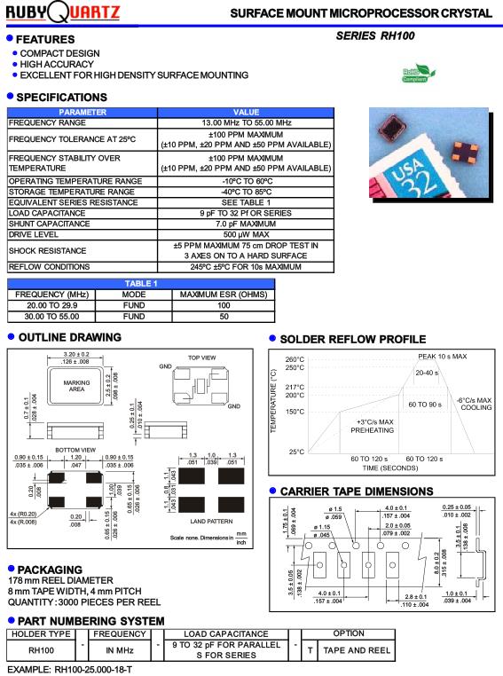 Rubyquartz晶振,RH100晶振,RH100-25.000-18-TR晶振