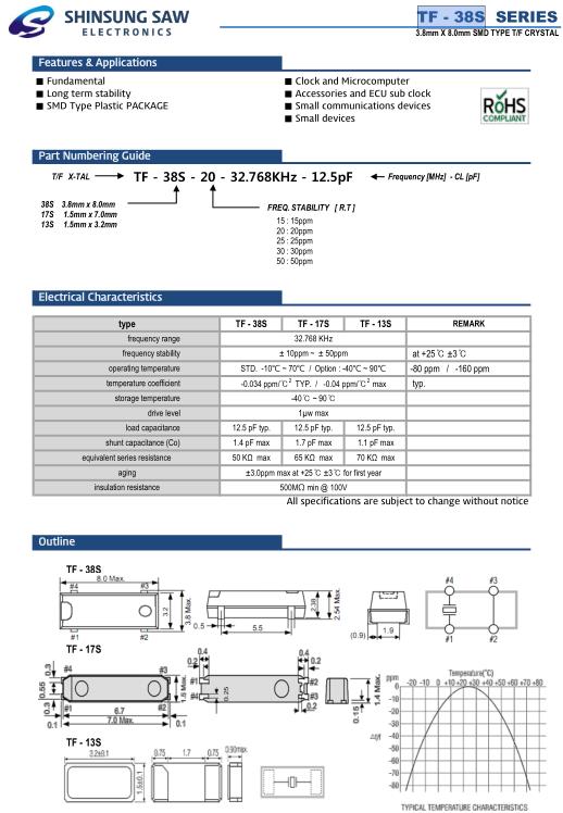 SHINSUNG晶振,TF-38S晶振,TF-38S-20-32.768KHz-12.5pF晶振
