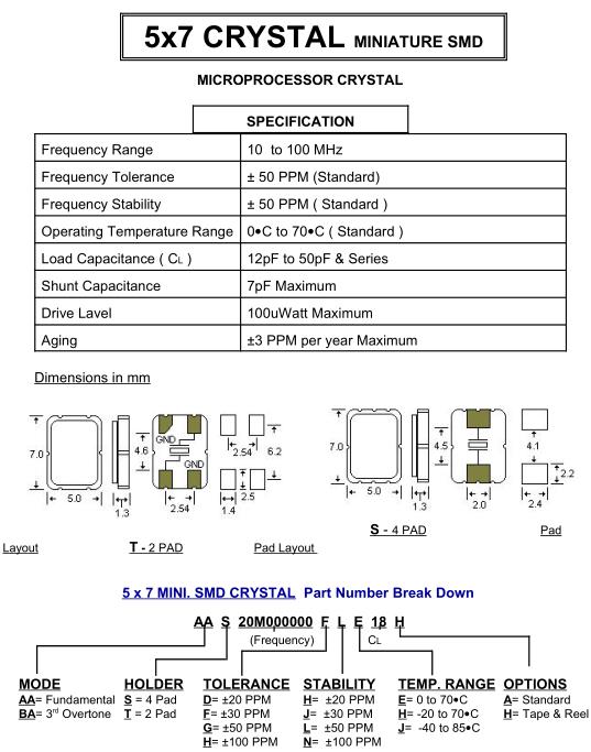 | Load Capacitance ( C L ) | 12pF to 50pF & Series |