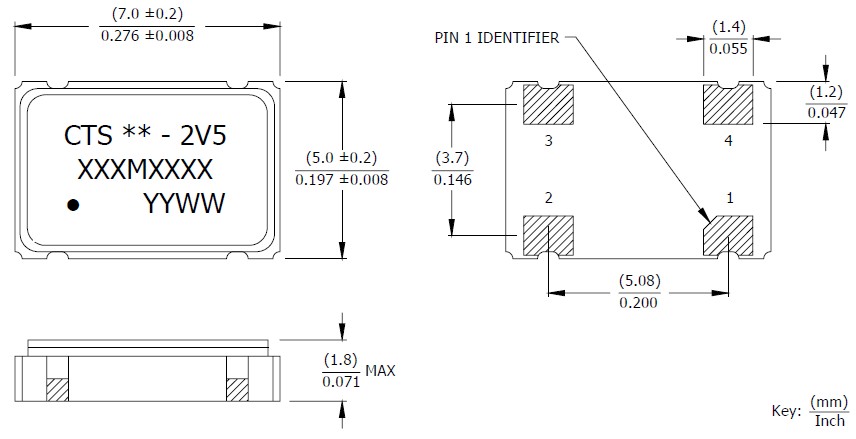 美國西迪斯晶振CB2V5,7050mm有源晶振,石英晶體振蕩器